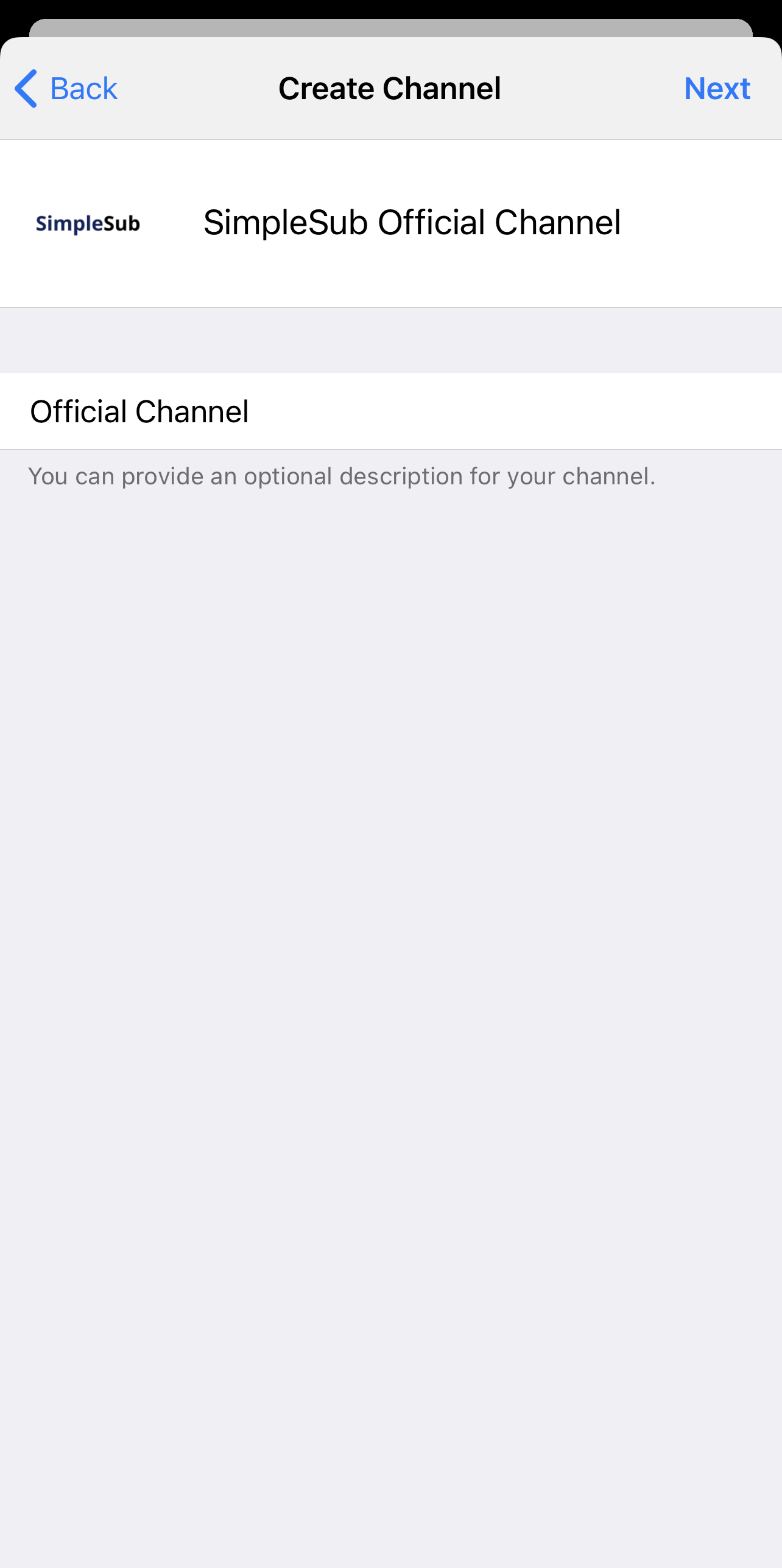 5. Go to our bot @simplesubbot and click "Create Bot". Select the type of bot, then forward or go to our bot and text a message with the API Token created earlier.